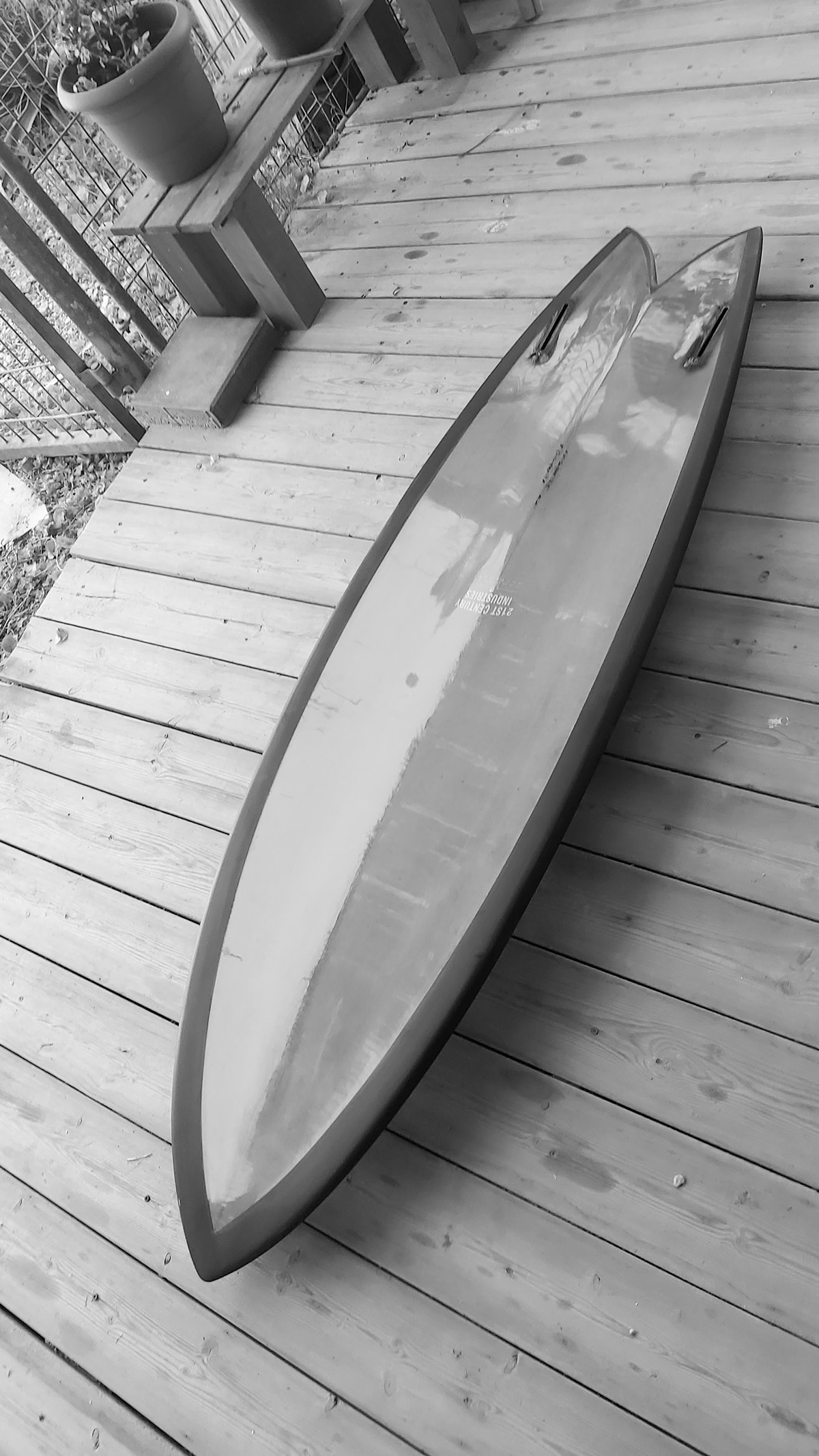 Classic planning hull. Wide body that creates a lot of pressure on the water, gives that lift and feather like feel when riding smooth wave. Deep single cocave through out the board to stabilize the speed, planning rails to lift you high on the surf. The apex of the rail positioned 60/40 for the profile of the board. Featuring twin fin as standard or quad by request.